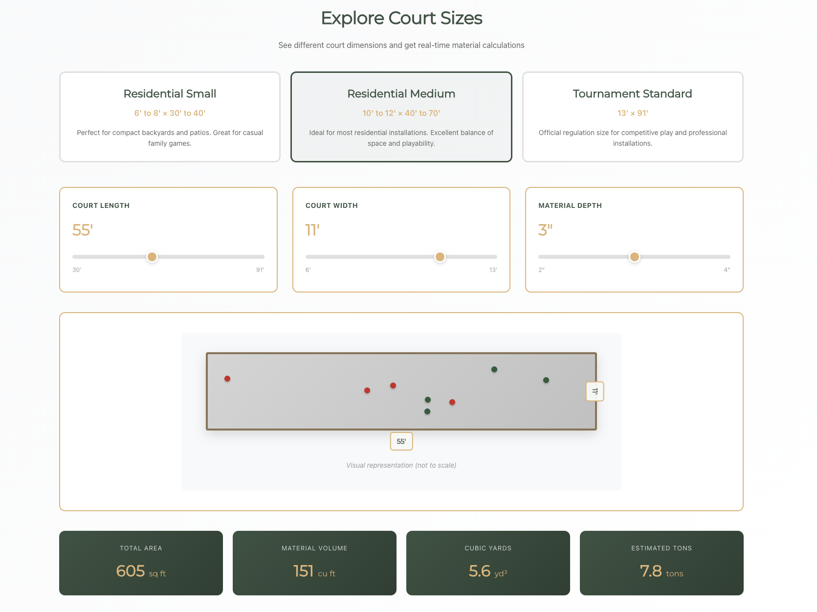 Bocce Court Pro required a Shopify store that felt premium and custom, not template-based. They needed interactive tools to help customers size courts correctly and locate nearby dealers.